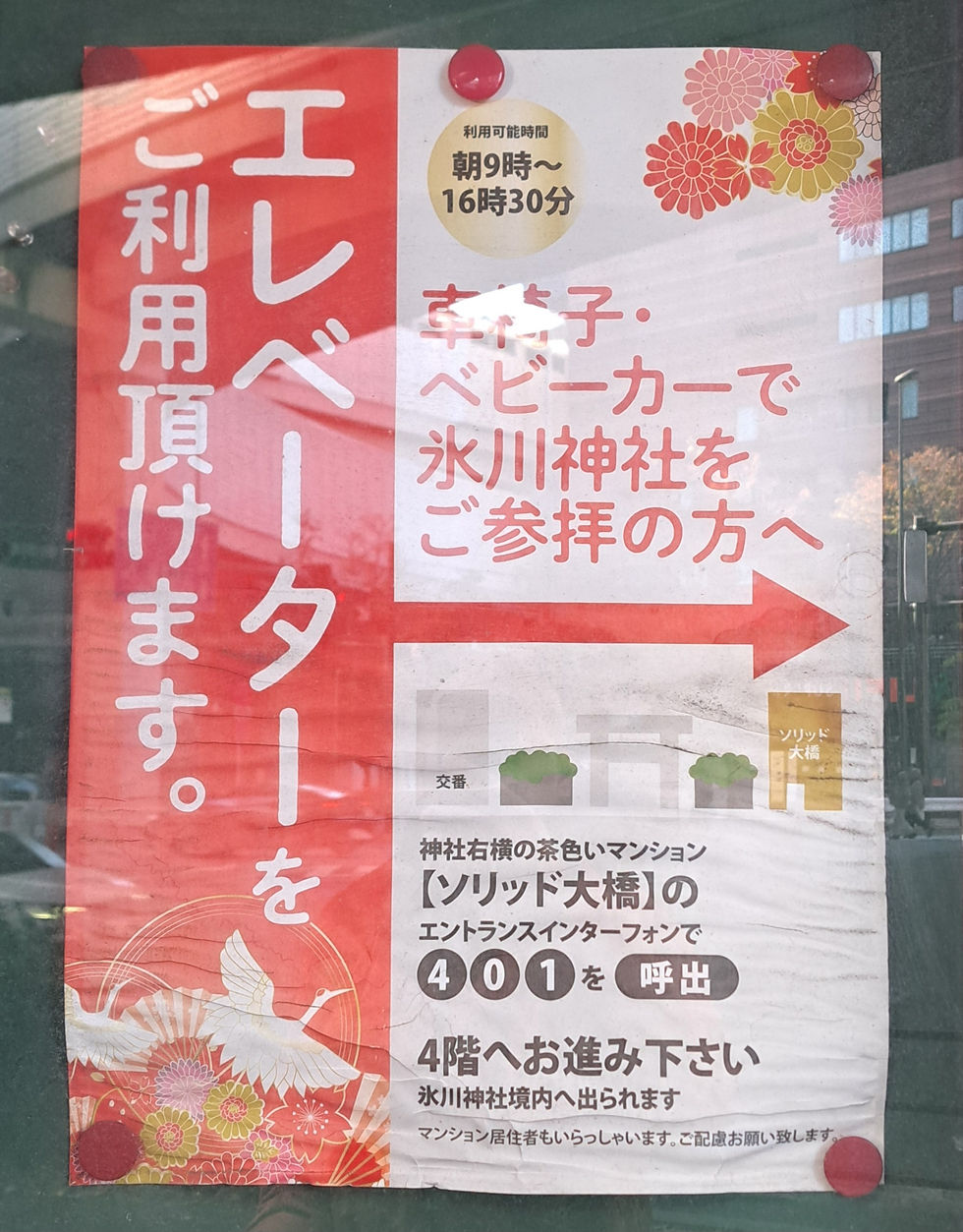 例年通りエレベーター利用の方へのご案内と参拝客長蛇の列の整備、境内に向かう階段も急斜面の為、雪崩や将棋倒し等の雑踏事故が起きないように警戒に当たりました。